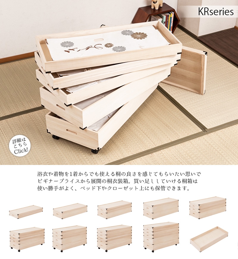 【桐心】きごころシリーズ スタッキング式桐衣装箱 1段 桐ケース 衣装ケース 押入れ クローゼット 桐たんす 保管庫