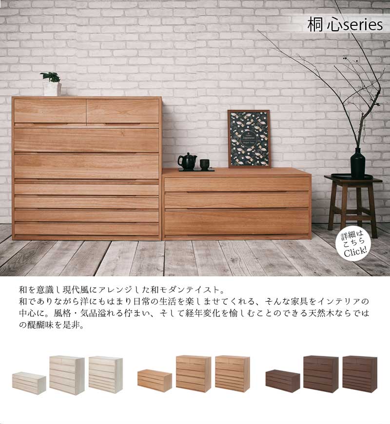 【桐心】きごころシリーズ 桐箪笥7段 白木 桐ケース 衣装ケース 桐タンス チェスト 桐衣装箱 押入れ