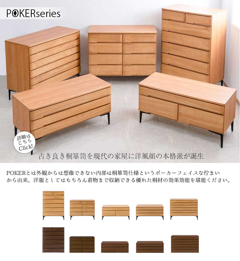 【POKER】幅80 奥行45 高さ93 6段 洋風チェスト 桐箪笥 ナチュラル ダークブラウン 日本製 完成品 国産 大川家具 衣裳タンス 生地仕上げ モダン 天然木 チェスト たんす 洋服タンス 和ダンス 収納タンス 桐たんす 桐タンス 箪笥