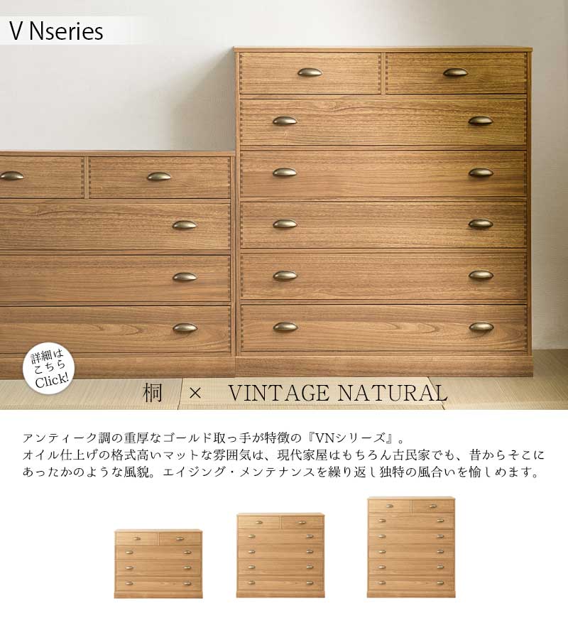 【桐心】きごころシリーズ 桐箪笥7段 ナチュラル色 桐ケース 衣装ケース 桐タンス チェスト 桐衣装箱 押入れ