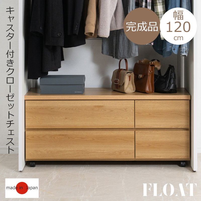 【float】 キャスター付きクローゼットチェスト幅120 奥行40.5 高さ52.5 日本製 完成品 2段 チェスト 衣類収納 引出し 引き出し 大川家具 国産 クローゼット 収納 整理タンス タンス スライドレール 衣類 ローチェスト ローボード