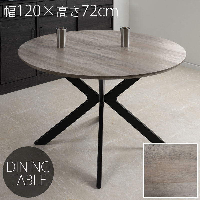 【flamingo】シリーズ ダイニングテーブル 幅120 高さ72 食卓テーブル 丸テーブル 4人掛け 4人用 木製 木目 円形 丸 円卓 グレー 灰色 モダン スタイリッシュ クロス脚 黒脚 アジャスター付き リビング ダイニング カフェ オフィス