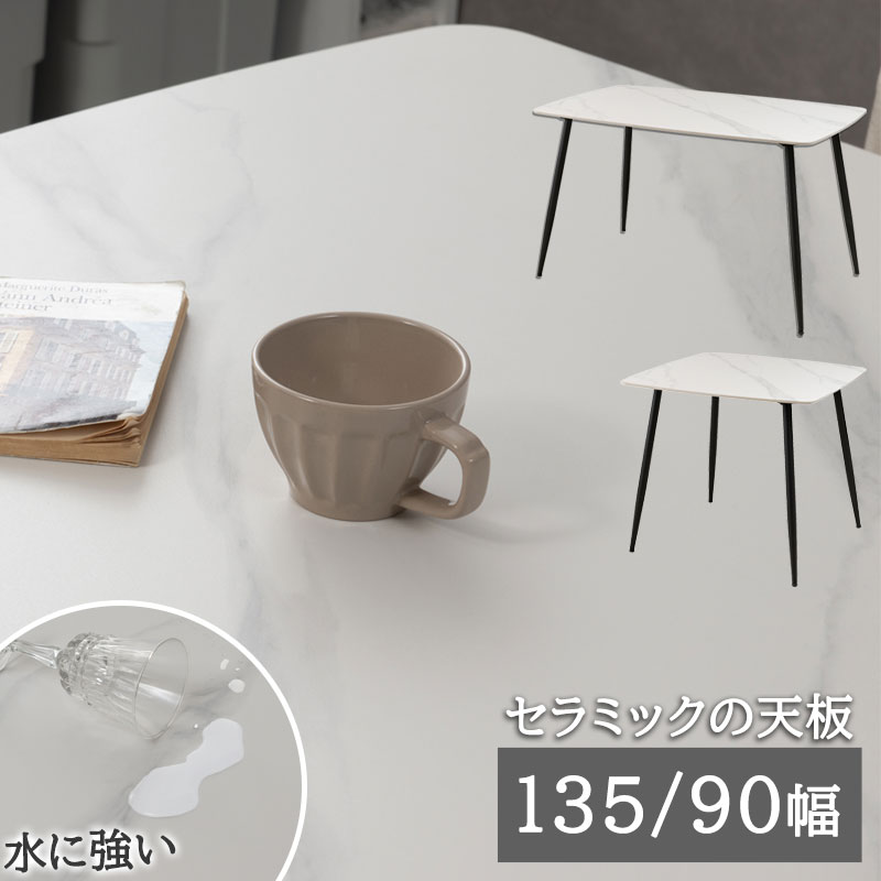 傷や汚れに強いセラミック天板使用【chess】シリーズ 幅135 奥行80 高さ72 ダイニングテーブル テーブル 食卓テーブル ホワイト ブラック 北欧 4人掛け 4人用 長方形 四角 大理石風 石目調 韓国インテリア 食卓 ダイニング リビング