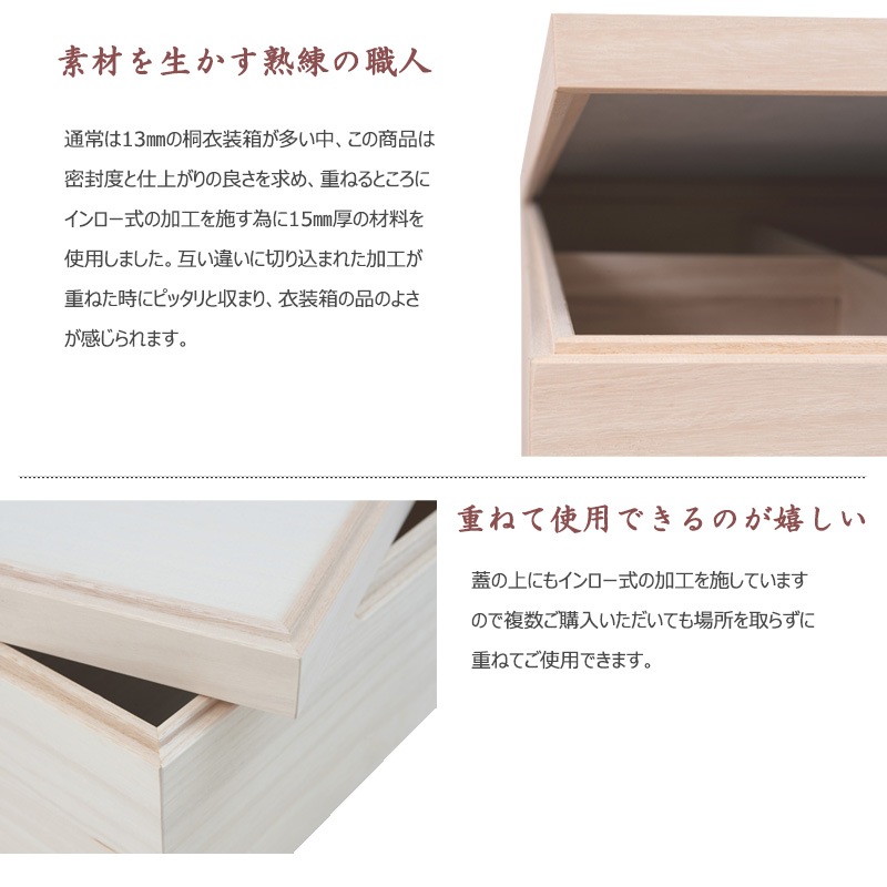 【桐心】きごころシリーズ スタッキング式桐衣装箱 2段 桐ケース 衣装ケース 押入れ クローゼット 桐たんす