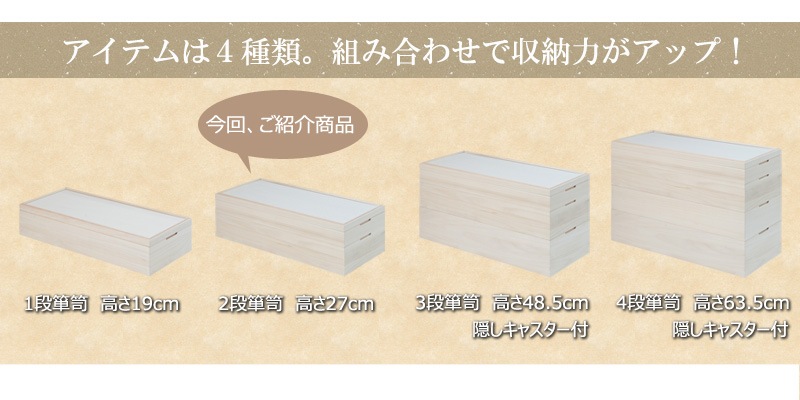 トップ > 衣類収納 > 和箪笥 > 桐衣装箱 > 【桐心】きごころシリーズ スタッキング式桐衣装箱 2段 桐ケース 衣装ケース 押入れ クローゼット 桐たんす