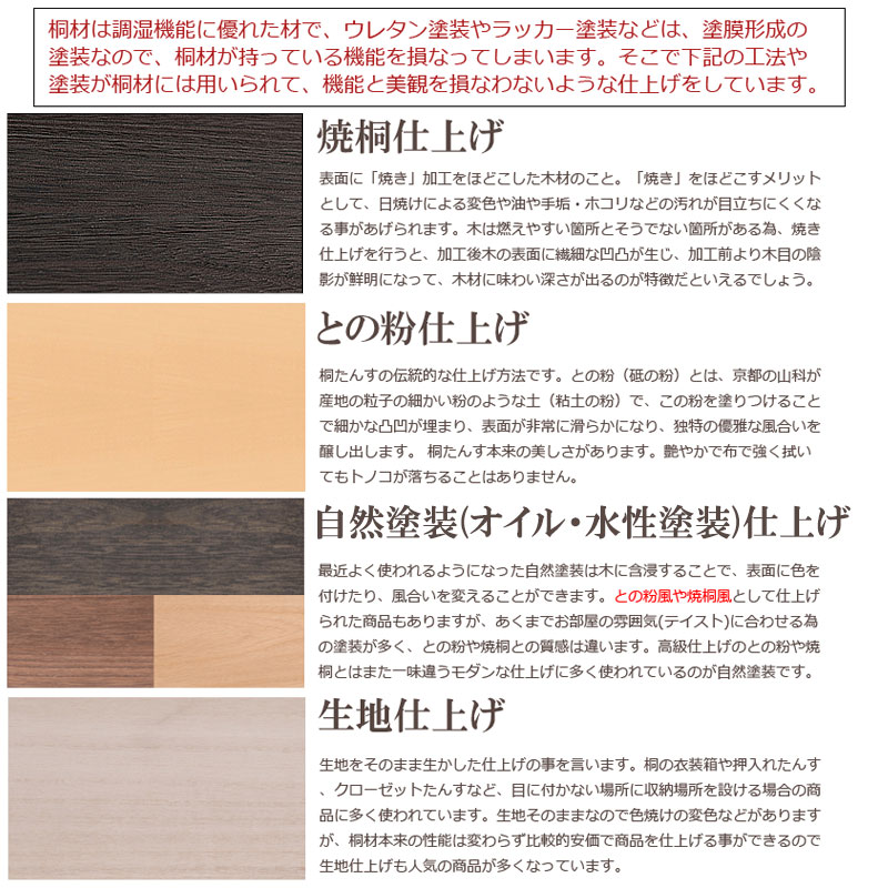 ■商品の仕様/本体:天然木桐材(浮造り仕上げ・オイル塗装)、引出し底板・背板:天然木桐化粧板、民芸金具:亜鉛ダイキャスト