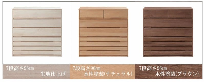 ■商品について/現代の暮らしに寄り添う日本の心と伝統美を落とし込んだ桐民芸箪笥【Jidai】時代シリーズ。モダンな仕上げの桐箪笥。表面の凹凸が美しく、和・洋どちらの空間にも溶け込みます。木のやわらかい部分と硬い部分を削ることにより、木目本来の凹凸を浮かび上がらせ、自然塗装により変色や油や手垢・ホコリなどの汚れが目立ちにくくなり、美しい状態が保たれます。木目の陰影が鮮明になって、木材に味わい深さが出るのが特徴だといえるでしょう。着物や浴衣など、普段あまり着ない衣類を保管しておく場所として代表的なのが桐箪笥。桐材は湿度の多い時は膨張し、少ない時は収縮するという性質を持っています。引き出しの中を乾燥状態に保ち、衣類を守ることができるのです。マットブラックが光るどっしりとした装飾金物をあしらい個性をしっかりと演じています。3段・5段・7段をラインナップし重ねて使えば収納量はもちろん大迫力の存在感。桐材は内部を一定の湿度に保とうとする働きがあるので大事な着物や洋服などを湿気から守る桐箪笥にしまうのがベスト。その名の通り『時代』を超えて愛着の湧く飽きないデザインが魅力。
