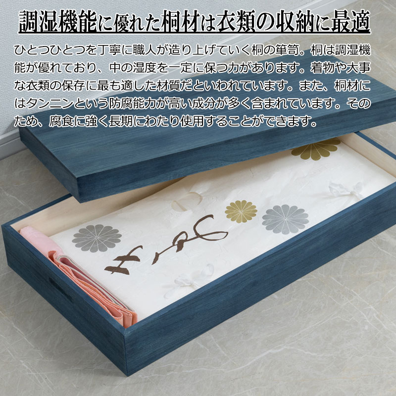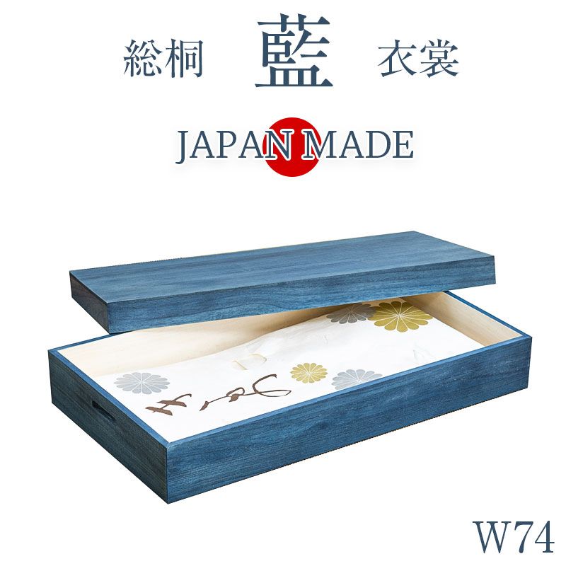 大切な衣装の保管に最適 桐衣装ケース 藍 幅74 奥行41.5 高さ16cm 日本製 完成品 着物収納 大川家具 大川 高級桐ケース 押し入れ クローゼット 着物用 収納ケース 整理タンス 衣装ケース 桐 桐箱 たとう紙 帯収納 ギフト 天然木