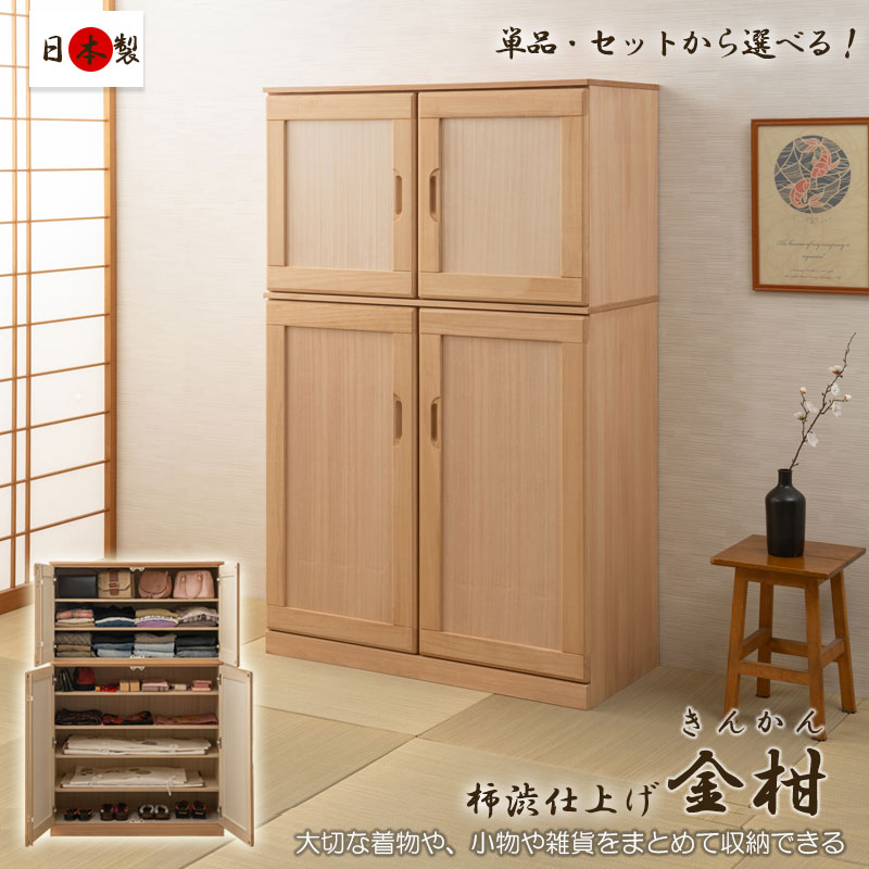トップ > 衣類収納 > 和箪笥 > 柿渋仕上げ 【金柑】 桐衣装収納キャビネット 幅99.5cm 日本製 完成品 和室 洋室 着物 帯 桐 収納ケース 大川家具 総桐 衣類収納 洋服収納 たとう紙収納 国産 収納 おしゃれ 浴衣 木地 生地仕上げ 掘り込み 棚